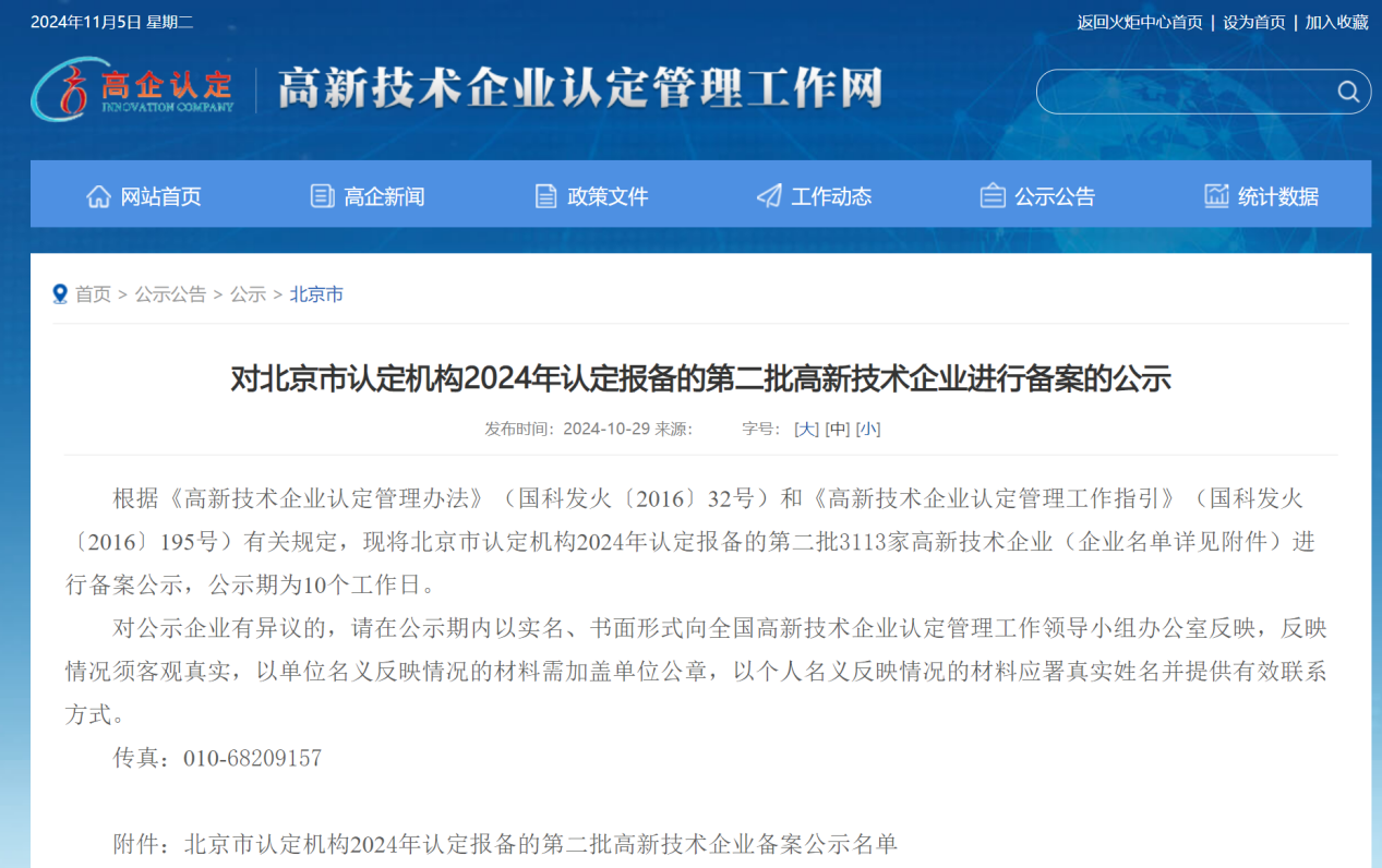 根據《高新技術企業(yè)認定管理辦法》和《高新技術企業(yè)認定管理工作指引》有關規(guī)定,全國高新技術企業(yè)認定管理工作領導小組辦公室對北京市認定機構2024年認定報備的第二批3113家高新技術企業(yè)進行備案公示。高新技術企業(yè)的認定是對企業(yè)在核心技術、研發(fā)投入、創(chuàng)新能力等多方面的高度認可與肯定,我司成功進入北京市高新技術企業(yè)進行備案的公示名單!