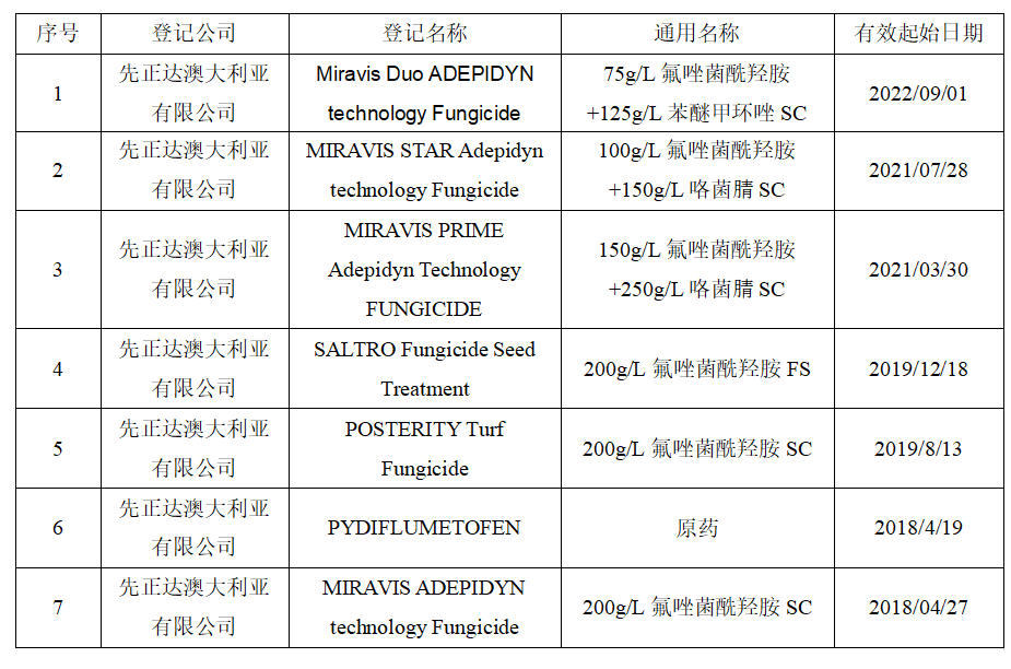 中國專利:CN102239137B,先正達(dá)參股股份有限公司申請于2009年12月1日,2029年11月30日到期;發(fā)明名稱為:作為殺微生物劑的新的吡唑-4-N-烷氧基甲酰胺。